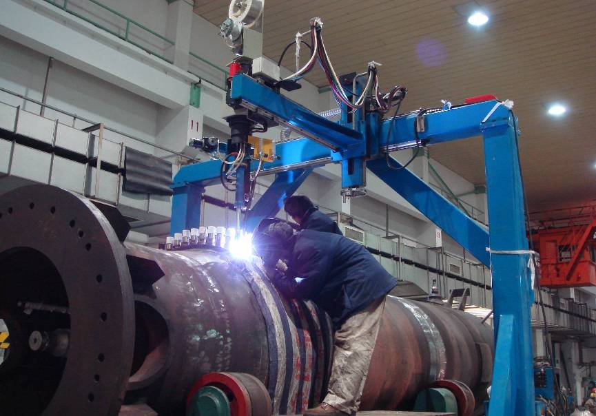 用途:主要用于軋輥、輸送輥等回轉體進行表面進行特殊表層的堆焊生產。最大回轉直徑:800mm,最大工件長度:3000mm,最大工件重量:3T。